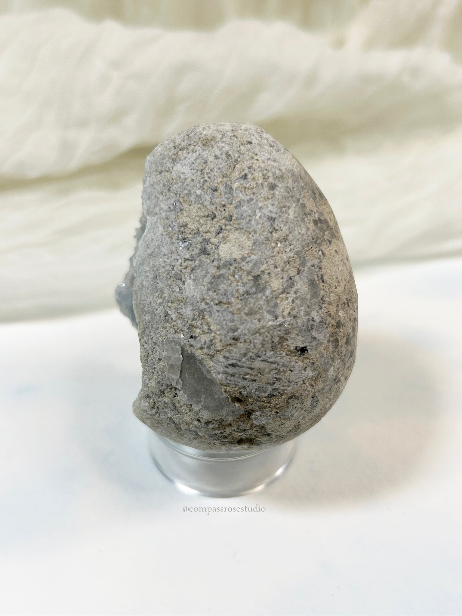 Use the included piece of Museum Putty to keep your geode securely on the base. To keep your miniature worlds looking their best, gently dust them with a clean makeup or paint brush. I use a soft blush brush to dust delicate items. Avoid placing them in direct sunlight and keep them in a climate-controlled area, as these pieces are not intended for outdoor display.