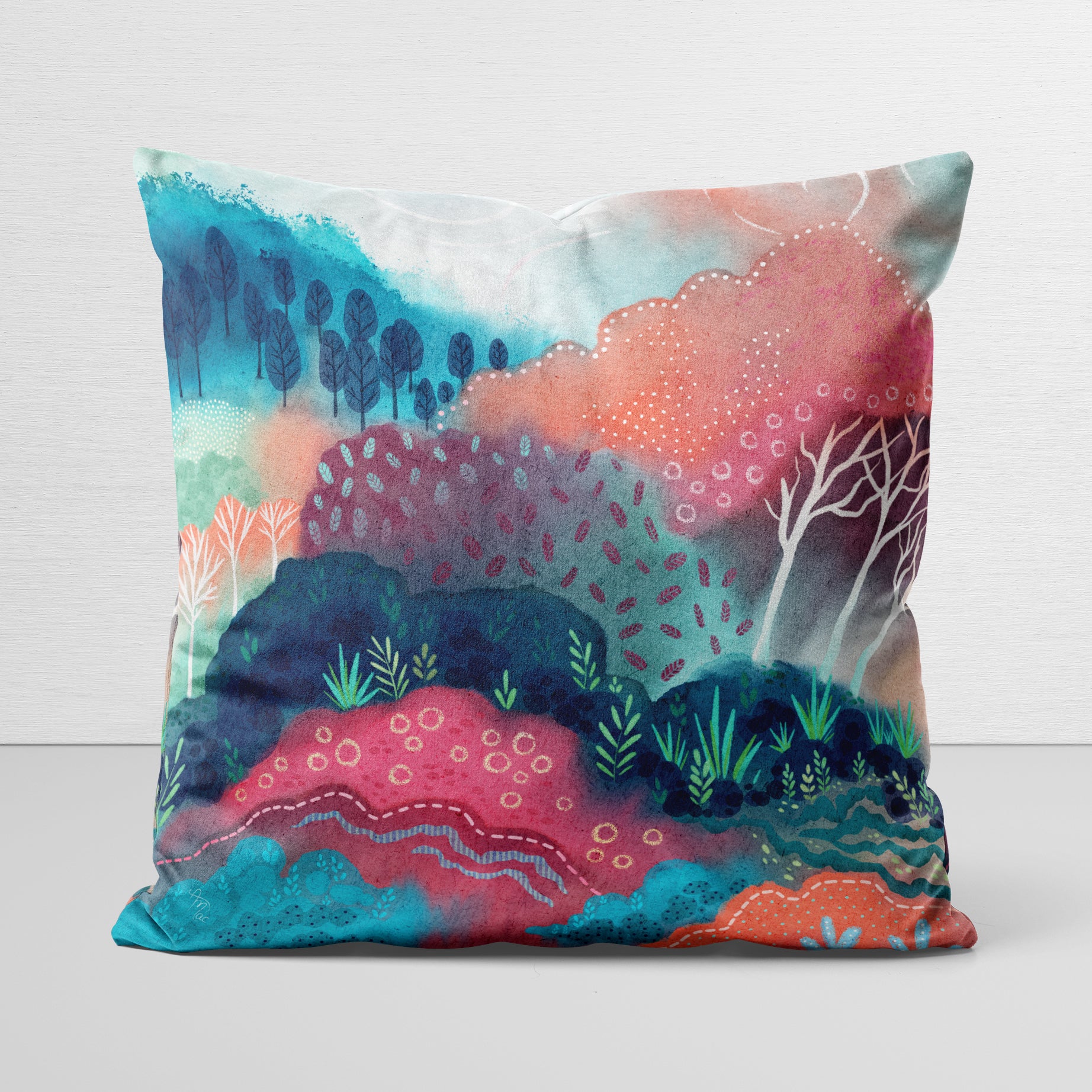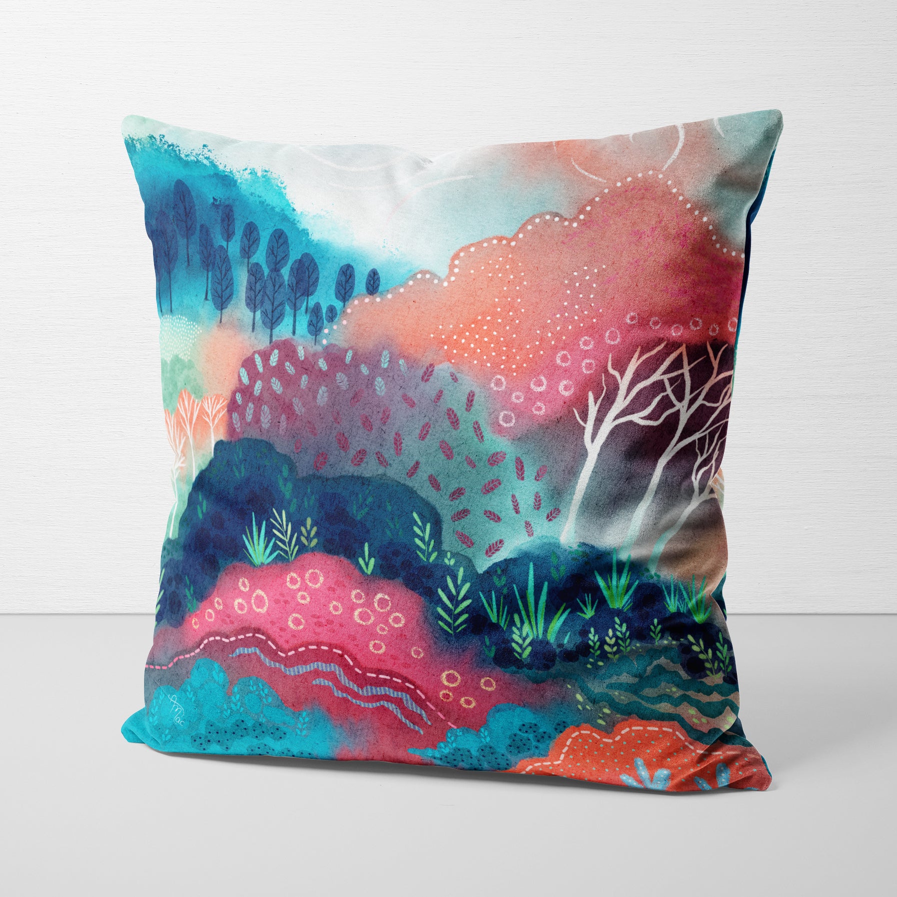 Bring a touch of artful comfort to your home. Each velveteen pillow cover features my original artwork and is crafted from fabric that feels luxurious while still standing up to everyday use. The cover measures 18" x 18" (pillow insert not included). Swap it out whenever inspiration strikes to effortlessly change the feel of your space.